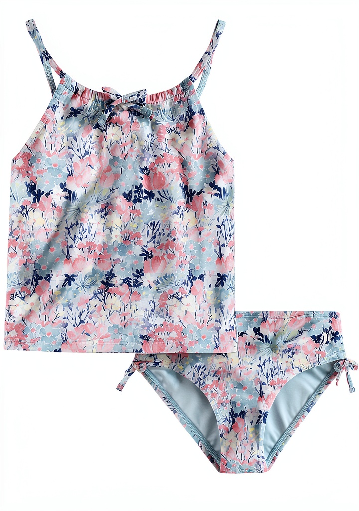 This tankini swim suit is perfect for various water-based activities, including swimming lessons, beach outings, pool parties, and family vacations. It is tailored for girls who need comfortable, secure swimwear that allows freedom of movement. The design supports active play and lounging, making it a versatile choice for summer camps, resort stays, or everyday use in warm climates. Its vibrant patterns and colors appeal to young wearers, promoting confidence and fun in the water.